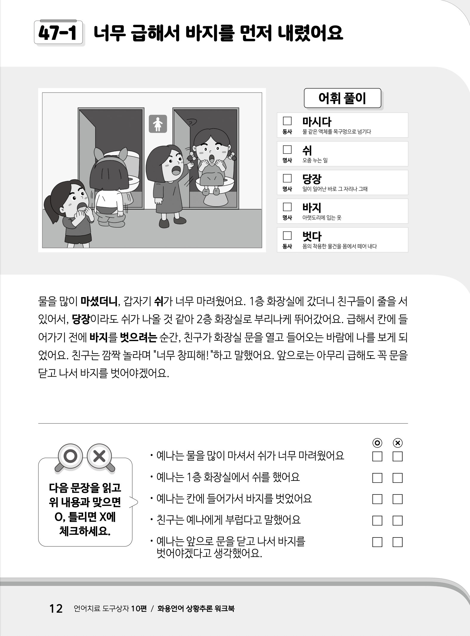 언어치료 도구상자10 화용언어 상황추론편